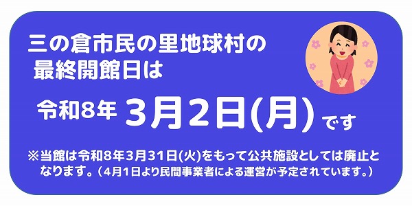 日頃より三の倉市民の里 地球村をご愛顧いただきありがとうございます。