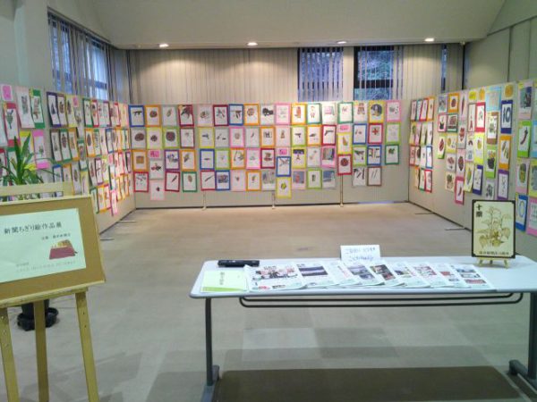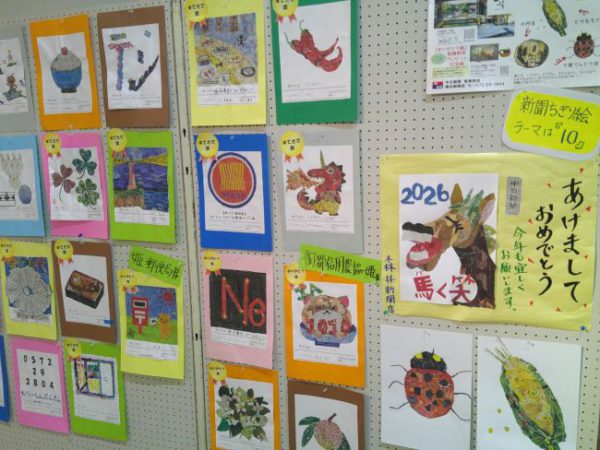 南姫小学校、南姫中学校、ピュアハート姫、陶技学園、姫郵便局、陶都信用農協の方々のちぎり絵の作品が展示されています。