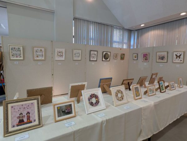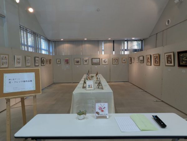 南姫公民館のサークル「押し花アート・花フレンド姫」のメンバーの作品展が始まっています。