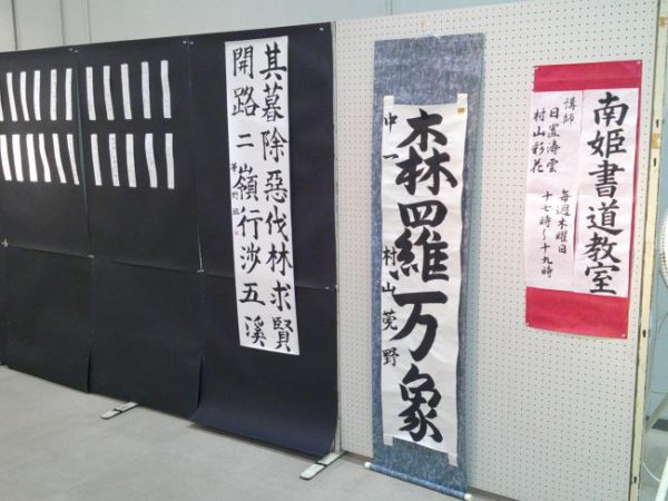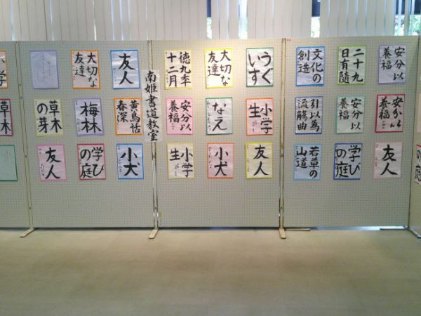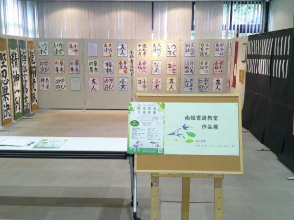 本日、4月27日より南姫書道教室の展示が始まりました。小学生、中学生の作品が並んでいます。GWも展示していますので、是非お越しください。