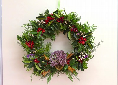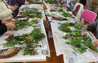 森の自然素材の生木やカラフルな木の実を贅沢に使って作る
