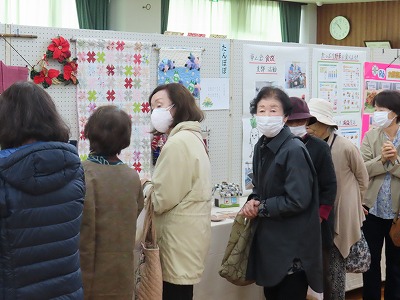 8団体と2名の個人展示があり、市之倉公民館の大ホールを素敵な作品でいっぱいにしてくださいました。華やかな大ホールとなり、たくさんの方に興味深く観ていただくことができました。
