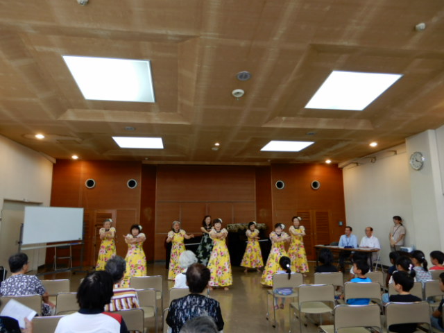 次に大幸会の中のクラブ活動の発表として、フラ・サルビアの皆さんによるフラダンスの披露がありました。異国情緒あふれる雰囲気で3曲踊っていただきましたが、皆さん表情もにこやかに心のゆとりが感じられ、見ている側も気持ちが和やかになりました。
