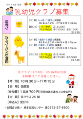 「乳幼児クラブ ひよこ・バンビクラブ」合同のお知らせ