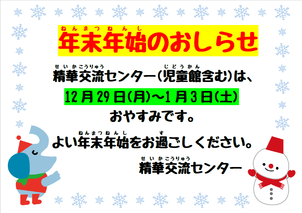 年末年始休館のお知らせ